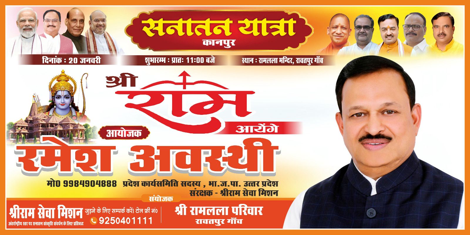 कानपुर में श्रीराम सेवा मिशन के संरक्षक श्री रमेश अवस्थी जी द्वारा आयोजित होगी भव्य सनातन यात्राPosted by On